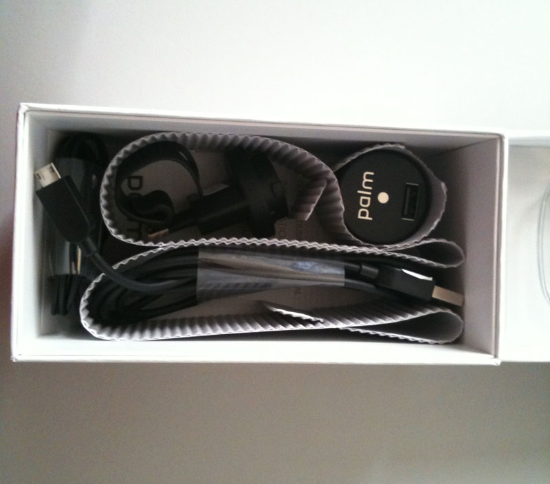 Le contenu de la boîte du Palm Pixi, le strict minimum : Cable USB, écouteurs, prise secteur (comme les 3/4 des téléphones portables).