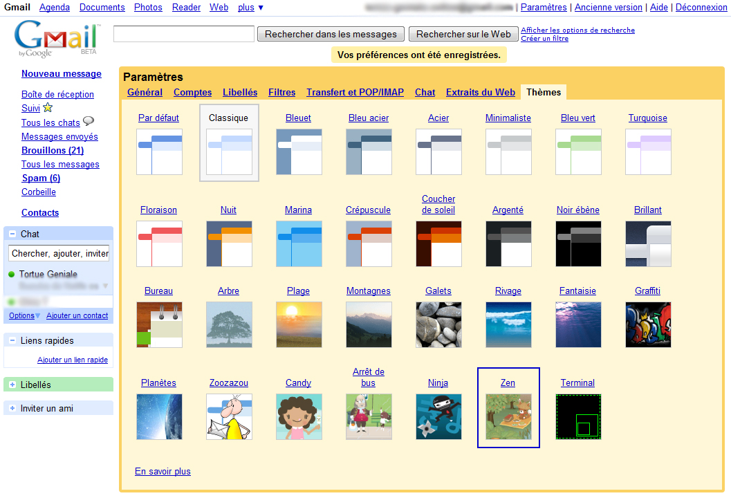 Une nouveauté que je viens de découvrir en live : les thèmes Gmail.