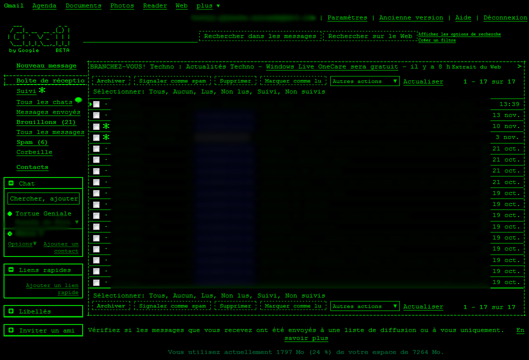 Il existe aussi un add-on de firefox: « better gmail » qui redessine complètement l’interface.