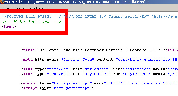 Un petit tour rapide du côté du code source de l’index de mes collègues de CNET.com montre bien quel niveau de geekitude ils ont la bas 😉