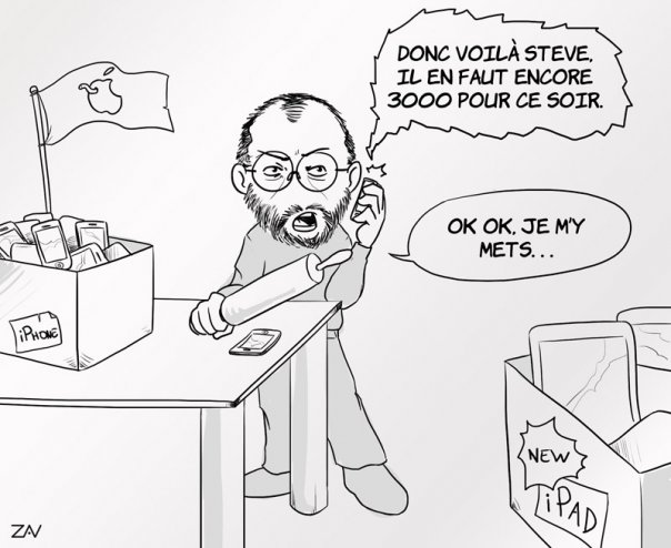 Comme c’est moi la source, je précise, je n’ai pas de dédain pour Apple hein, c’est juste un dessin inspiré d’un article sur fredzone.