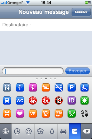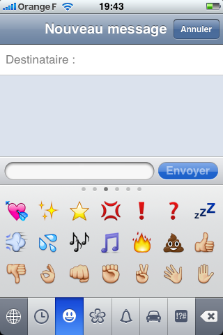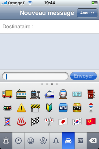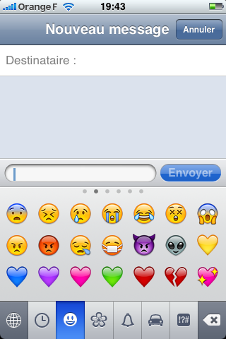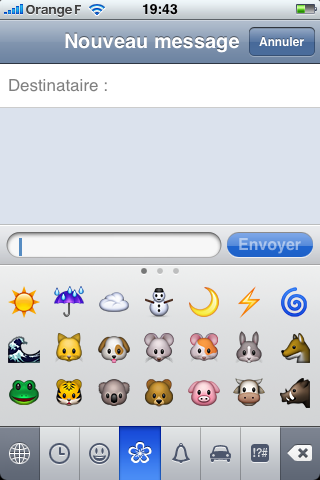 Je vous annonçais il y a quelques minutes la disponibilité limitée des emojis chez nous via une application de l’App Store. Voici une petite galerie de ce qu’on rate en temps normal.