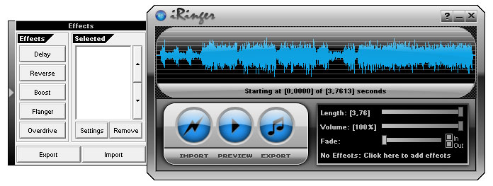 * Length : La durée de votre sonnerie. Lorsque vous modifiez la durée, vous pouvez ajuster votre mp3 pour le faire commencer et finir la ou vous voulez en faisant glisser le spectre du mp3 (en cliquant dessus, restez appuyé et bougez la souris de droite à gauche).