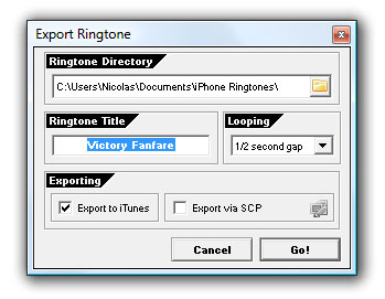 * Exporting : Permet d’importer automatiquement la sonnerie dans iTunes. A laisser coché bien sur 😉