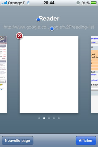 Toujours dans Safari, si vous sélectionnez un morceau de l’url et que vous voulez changer d’onglet, les points de la sélection ne disparaissent pas.