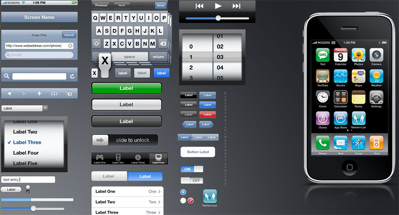 Voici quelques choses d’utile pour certaines personnes. L’interface entière de l’iPhone pour Photoshop, découpé morceau par morceau. C’est du super boulot ! En plus, il y a des exemples !