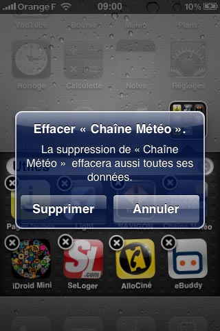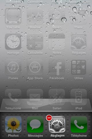 Pour supprimer une application de la liste des applications en tâche de fond, il suffit de rester appuyer sur une des icônes. Elles se mettront à trembler et un « – » apparaitra à coté de chacune d’elle. Une simple pression suffira à fermer totalement l’application.