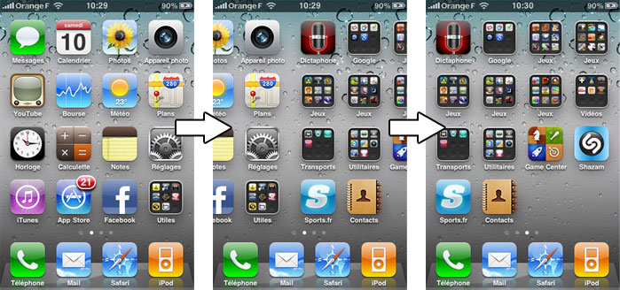 Je classe mes applications dans des dossiers (depuis l’OS 4) et j’aimerais aussi mettre un même raccourci à double sur la première page !?