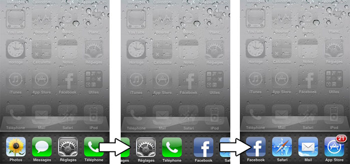 Le multi-tâches est très simple à utiliser. Une simple double pression sur le bouton home de l’iPhone (en bas de l’écran) vous ouvre la gestion des divers programmes en tâche de fond. Désolé pour les personnes (comme moi) qui utilisez la double pression du bouton home pour accéder rapidement à l’iPod, ce n’est plus possible 😉