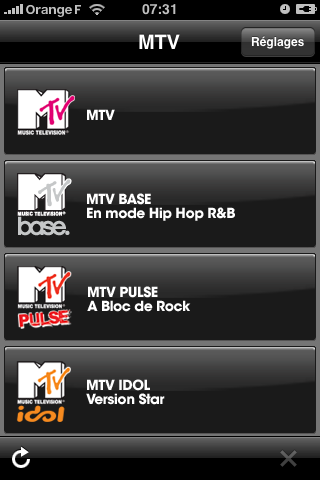 Attention quand même aux clients SFR ! L’application MTV pour iPhone n’est accessible qu’aux utilisateurs de Orange et Bouygues. Les auteurs de l’application MTV pour iPhone conseil aux utilisateurs SFR d’utiliser SFR TV pour regarder ces 4 chaines.