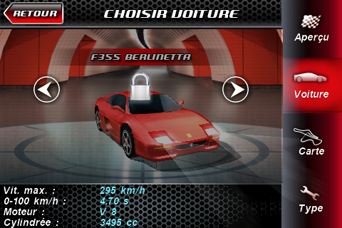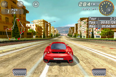 C’est pourtant pas si mal si on prend en compte le fait que ce n’est qu’un jeu pour téléphone portable, pour passer 5 minutes de temps en temps… Parce que même Gran Turismo, ça te fait pas conduire une Ferrari mais juste ta télé! Moi ce que j’aime dans la conduite sportive (J’ai jamais conduit une Ferrari, juste monté en passager sur circuit), outre le bruit du moteur, c’est ressentir les vibration du au moteur, à la route… Donc en gros, à part deux ou trois simulateurs totalement inaccessible au grand public, il n’existe aucun jeu de voiture qui reproduise la conduite réelle d’un voiture…