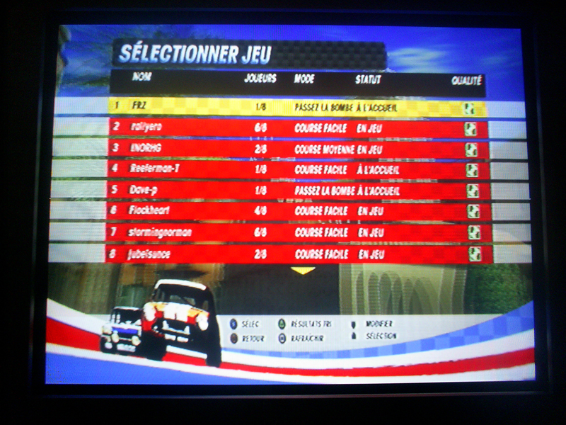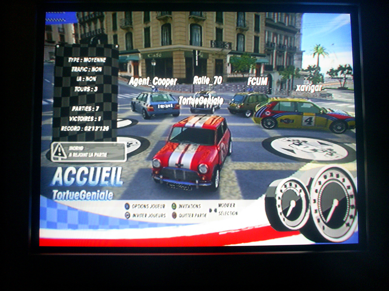 Le temps que tout le monde choisisse sa voiture, on reste dans une petite salle d’attente dans laquelle on peu s’amuser à casser les oreilles des gens en accélérant, klaxonnant ou en faisant clignotter ses phares. Le micro est géré, du coup vous pourrez entendre des racailleux qui insultent et qui se la jouent alors qu’ils n’arrivent même pas à finir une course 🙂