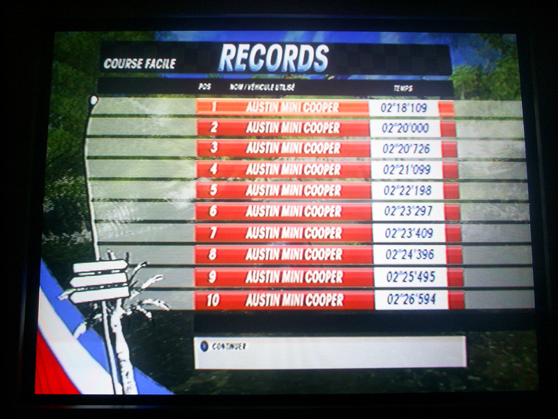 Un écran s’affiche ensuite, listant tous vos records et ceux déjà existant (si vous ne les avez pas battus) et la voiture avec lesquels ils ont été réalisés.