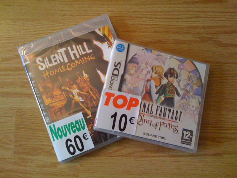 Hum bon, tout ça pour dire que je me suis acheté Silent Hill Homecoming sur PS3 (absolument terrible ! Bientôt en test) et surtout Final Fantasy Crystal Chronicles Rings of Fate à seulement 10€ ! Putain un Final Fantasy à 10€ et attention, c’est loin d’être une bouse, il a quand même été noté 7/10 par Greg sur Gamekult (et vous connaissez les notes sadiques de Gamekult hein). Il doit encore en rester quelques un au Micromania Caumartin près de Saint Lazare 😉