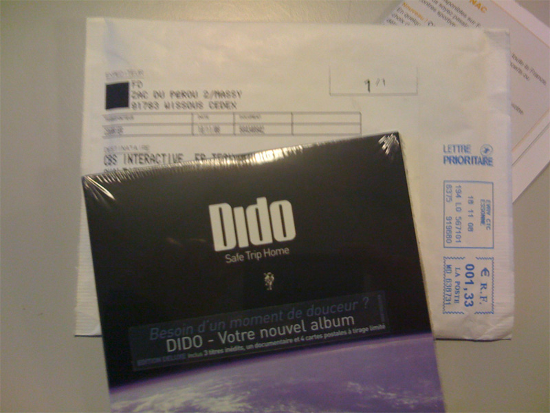 Quelle joie en arrivant chez CBS ce matin, de trouver sur mon clavier le nouvel album de Dido que j’avais commandé à la Fnac en début de semaine (Oui je suis un geek fainéant, j’achète sur internet).